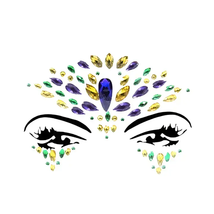 Mardi Gras Pear Shaped Stick on Face Crystals